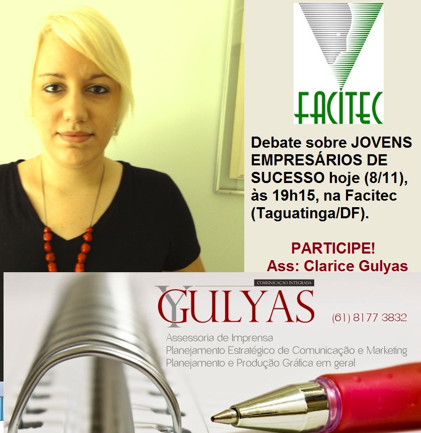 Irei participar do debate sobre Jovens Empresários de Sucesso para a turma do 7° período de Jornalismo da faculdade Facitec Brasília !!