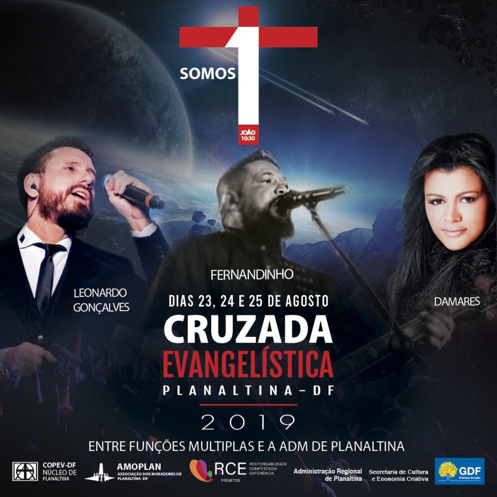 A cidade mais antiga do Distrito Federal, Planaltina-DF, está completando 160 anos e receberá nos próximos dias 23,24 e 25 de Agosto, a 24ª edição da Cruzada Evangelística. O evento está sendo realizado pelo Conselho de Pastores núcleo de Planaltina-DF(Copev/Plan), em parceria com a Associação de Moradores de Planaltina(Amoplan), Secretaria de Cultura do Distrito Federal e com o apoio da Administração Regional da cidade. A festa terá início às 19hs, no estacionamento do Ginásio de Múltiplas Funções, a entrada é gratuita.